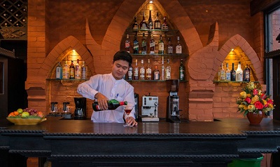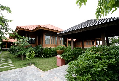 The 46 guestrooms are all generous in size and decorated with Burmese carvings, rattan furniture, teakwood-panelling and silk textiles. All are air-conditioned with safety deposit box, wifi and ensuite bathroom.
