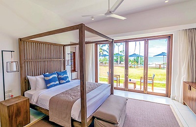 The hotel comprises four Ocean View Suites, four Ocean View Bedrooms and two Kumu Bedrooms. All 10 bedrooms have direct ocean views while the Ocean View Suites and Ocean View Bedrooms also open onto either private balconies or garden terraces. The rooms are spacious with a chic open plan layout, and their neutral colour palette is enhanced by colour splash contemporary batik cushions and vibrant works of modern local art. All have satellite TV, minibar, tea & coffee-making facilities and safe.