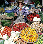 In the north you’ll feel China’s influence with the popularity of noodle, stir fries and stews. Fewer spices are available, but the people couldn’t do without black pepper. Equally important are the sweet and pungent herbs – basil, mint, coriander and several other tasty leaves.