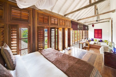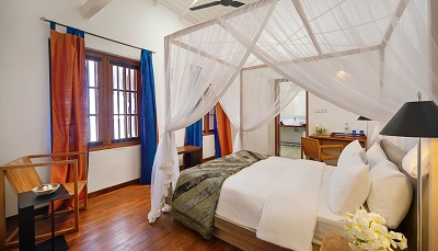 In the historic wing there are five double bedrooms all named after academic subjects that echo the building's former incarnation. Four of the rooms (Headmaster's, History, Geography and Art) are on the first floor encased by a beautiful shuttered wooden veranda and the fifth (Prefect's) is on the ground floor directly next to the pool. The new wing’s rooms are across the narrow road and are much more modern in style with polished concrete floors and neutral decor. All rooms are en-suite with air-conditioning, ceiling fan and WiFi.